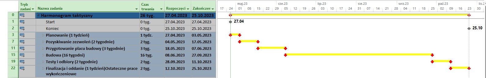 Harmonogram taktyczny to szczegółowy plan działań, który zawiera informacje na temat konkretnych